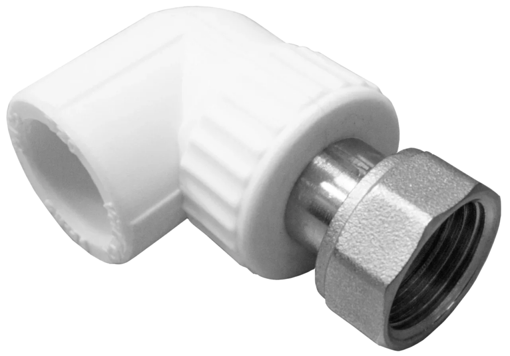 Угольник PP-R комбинированный белый с накидной гайкой Дн 20х1/2″ VALFEX 10138020 — металлопрокат используется в строительстве, машиностроении, автомобилестроении, производстве техники и металлоизделий.