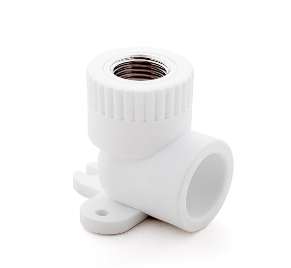 Угольник PP-R комбинированный белый ВР Дн 20×3/4″ с креплением RTP (РосТурПласт) 15104